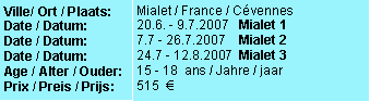 Pour vous les jeunes à partir de 15 ans qui ne voulez pas passer vos vacances à vous ennuyer et qui avez envie de vous amuser avec d’autres jeunes de votre âge, Mialet est le camp de vacances dont vous avez besoin. Nous avons beaucoup d’activités à vous proposer: tour de canoë, escalade, visite des grottes, promenade nocturne au marché, excursion au bord de la Méditerranée etc.…. Les soirs, on s’amuse ensemble en disco au sein du campement, aux spectacles et aux jeux sous notre chapiteau ou nous organisons une boum sur la plage à proximité de notre camp.
